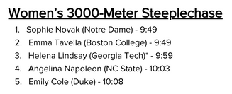 I'm not someone who pats myself on the back too often (ok, maybe that's a lie), but I thought I mostly nailed the women's steeplechase predictions at the ACC Championships.